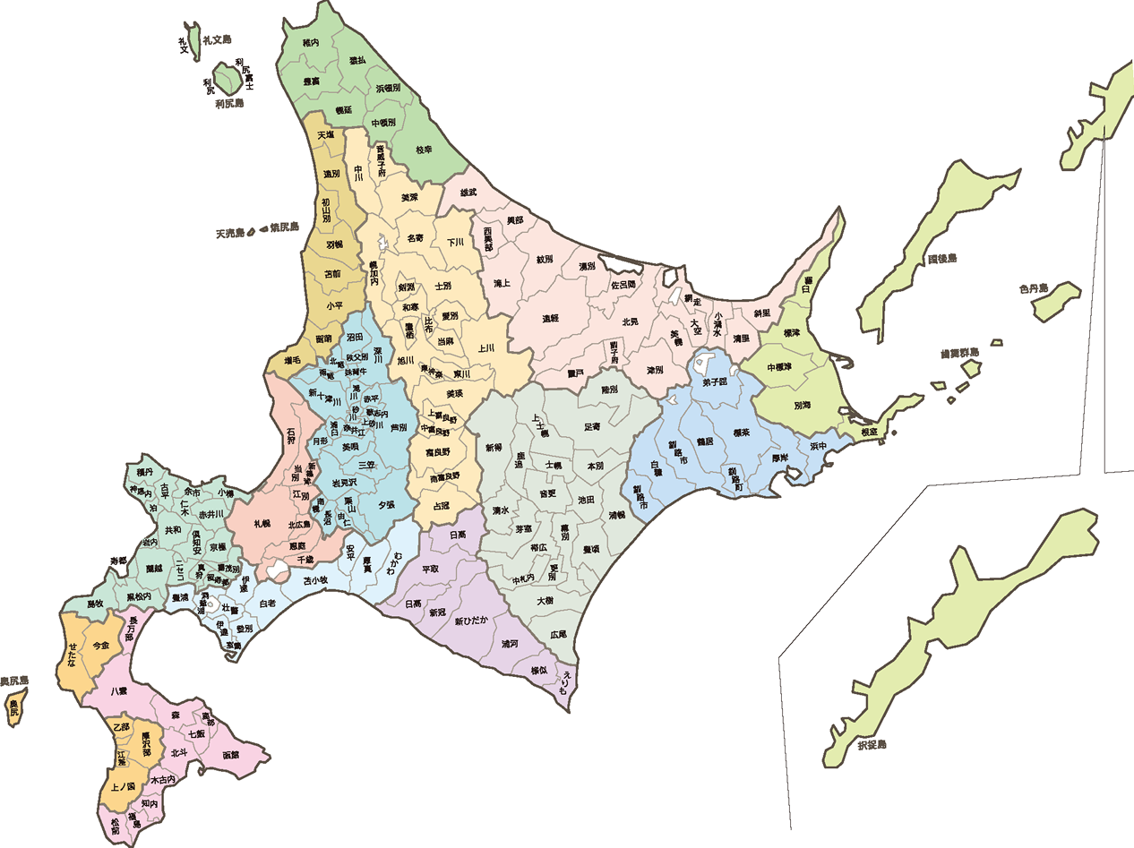 道央地域:札幌市|小樽市|千歳市|苫小牧市|室蘭市|岩見沢市|江別市|北広島市|恵庭市など