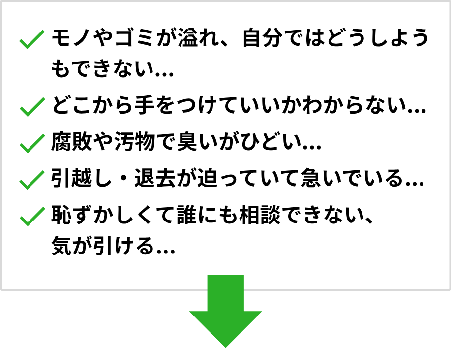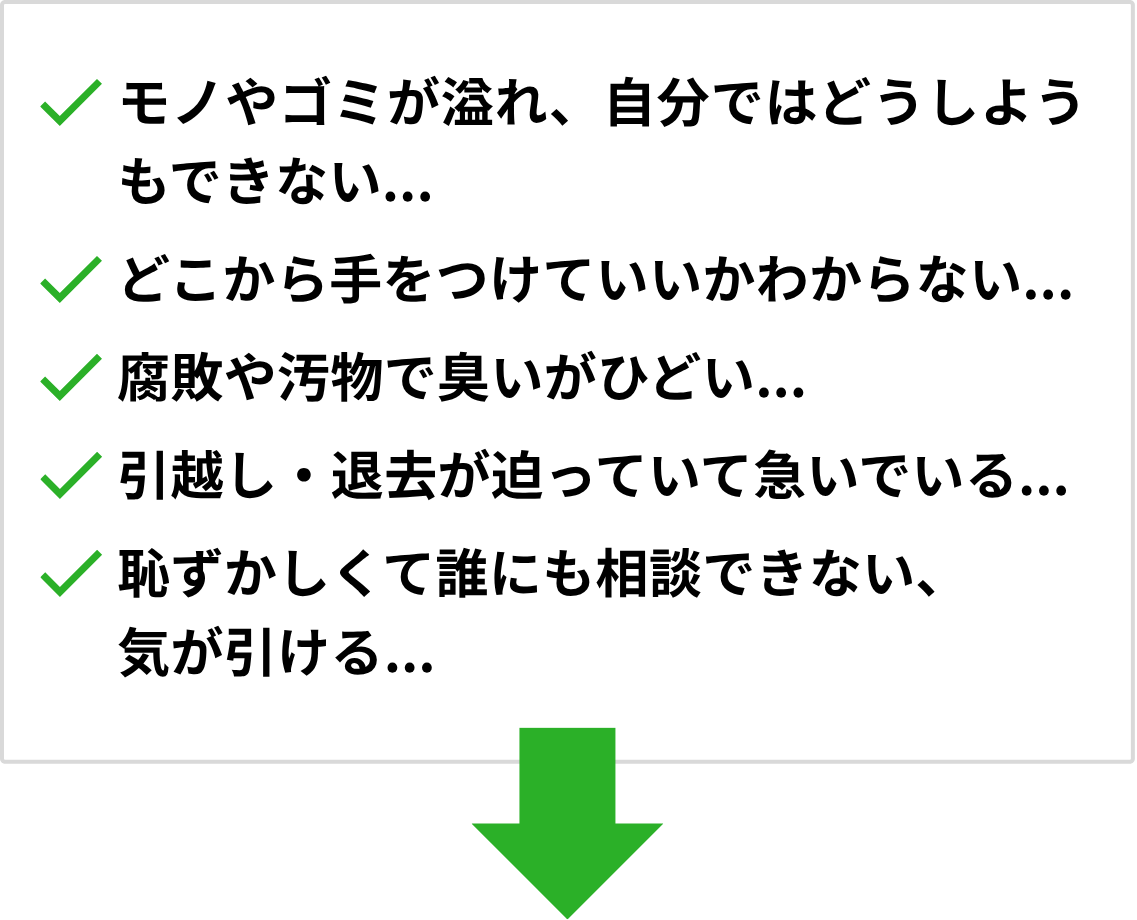 ゴミ屋敷・汚部屋片付けのプロにお任せください!