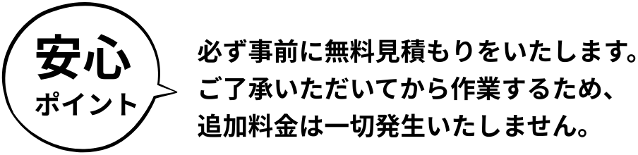 現地調査で細かく状況確認するので、見積もり後の追加費用はございません。